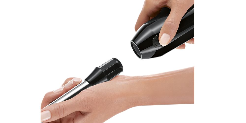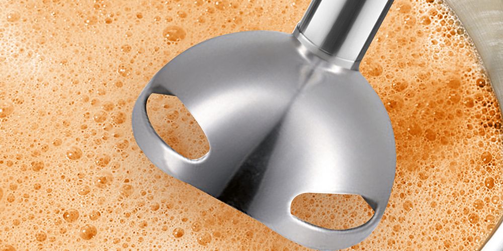 Забудьте про забризканий кухонний фартух, стільницю або навіть кухонну стіну, яку завжди потрібно було мити після змішування. Тепер ваша робота з блендером буде приємною і, перш за все, чистою. Це пояснюється особливою конструкцією змішувального наконечника, що запобігає розбризкуванню.