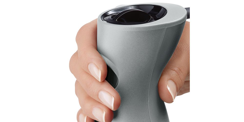 Сам контакт руки з ручкою блендера обіцяє комфортну та безпечну експлуатацію. Ручка має ідеальну, ергономічну форму, а м'яке на дотик,не слизьке покриття SoftTouch полегшує використання пристрою під час будь-якої роботи.